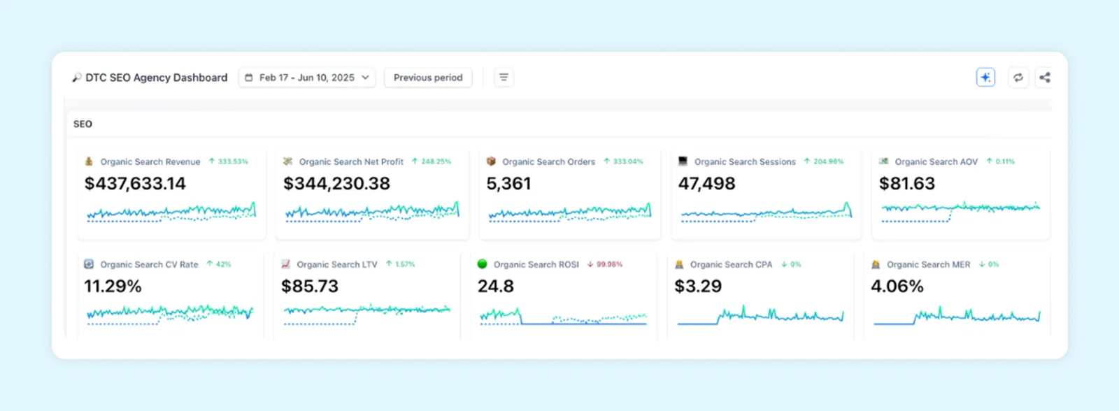 For any SEO agency working with ecommerce brands, the combination of reliable attribution data and intelligent agent-driven reporting isn't just helpful – it's essential for building trust and demonstrating real business impact.