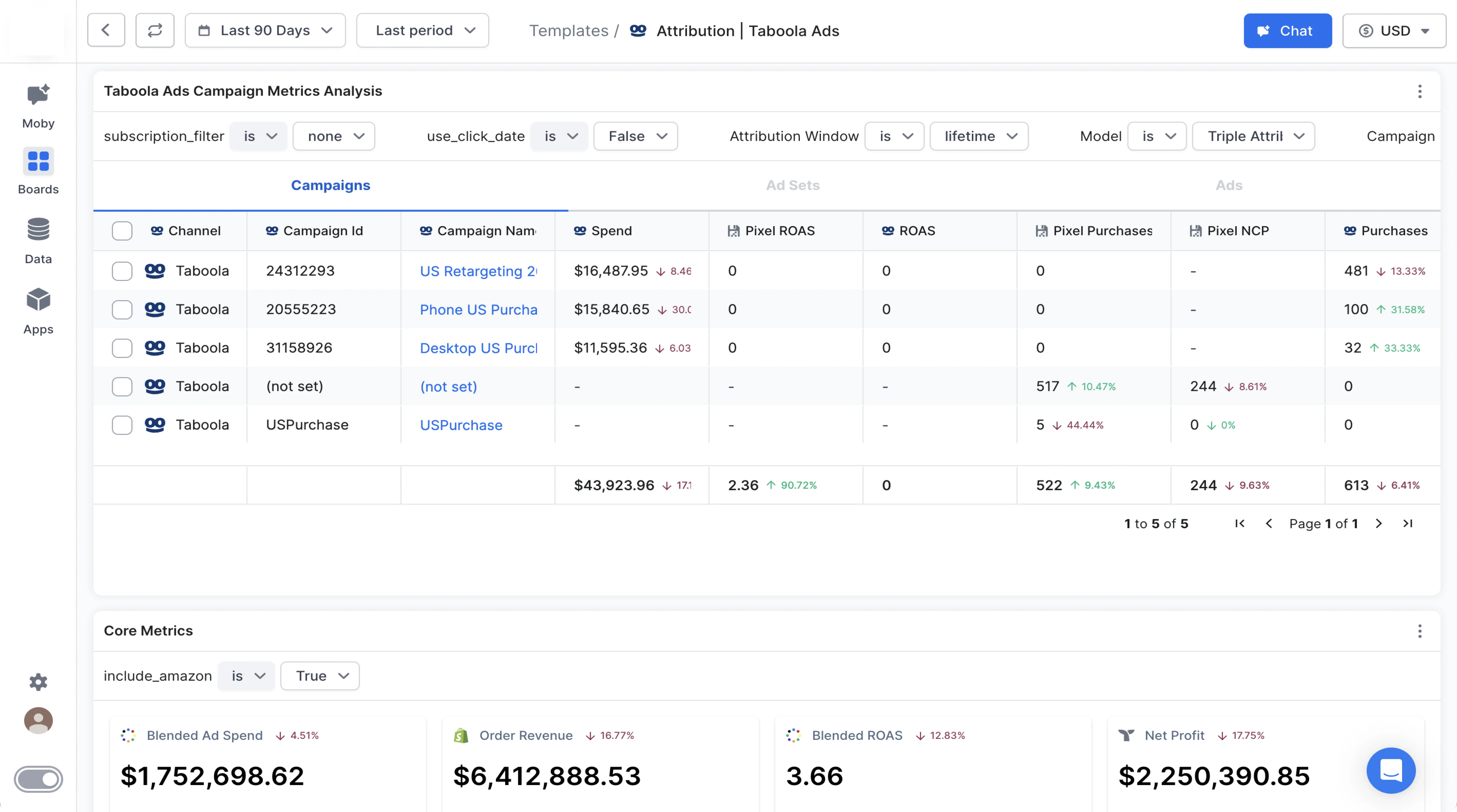 View your Taboola metrics and access first-party data analysis directly in Triple Whale